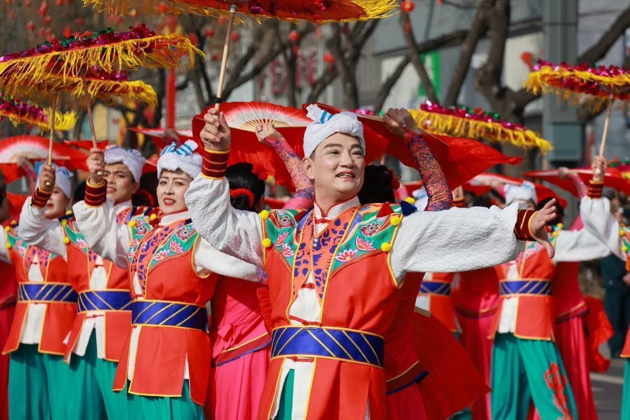 陕北秧歌游街表演在榆林城区举行。杨彬摄